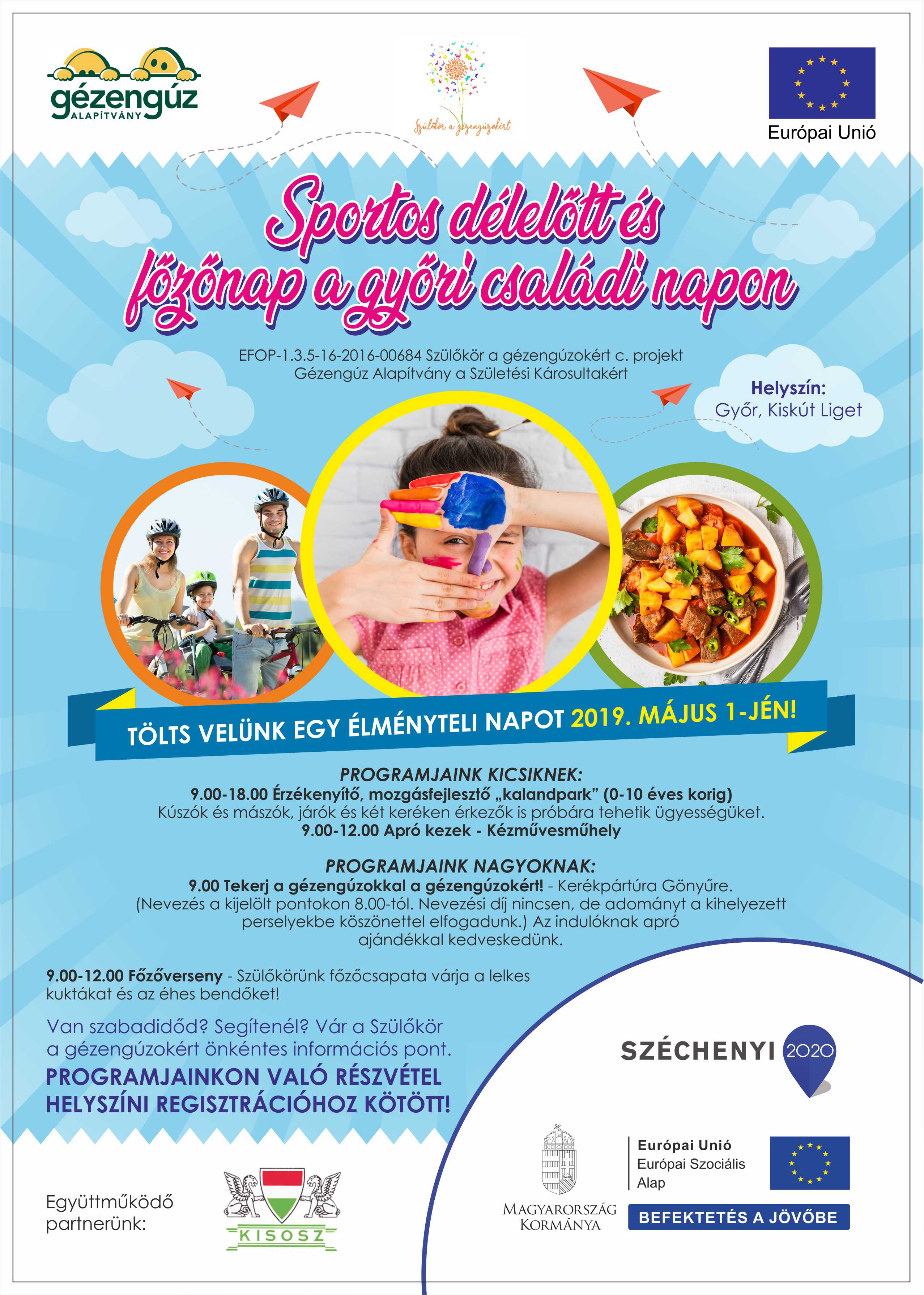 09.00 Tekerj a gézengúzokkal a gézengúzokért! – Kerékpártúra Gönyűre (nevezés a kijelölt pontokon 8.00-tól. Nevezési díj nincsen, de adományt a kihelyezett perselyekbe köszönettel elfogadunk.). Az indulóknak apró ajándékkal kedveskednrk.
