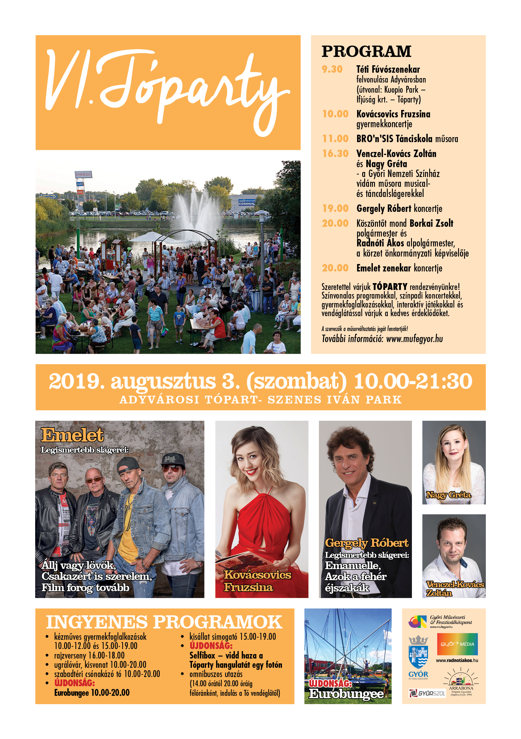 A hagyományos adyvárosi Tópartyt augusztus 3-án, szombaton 10 óra és 21.30 között rendezik.