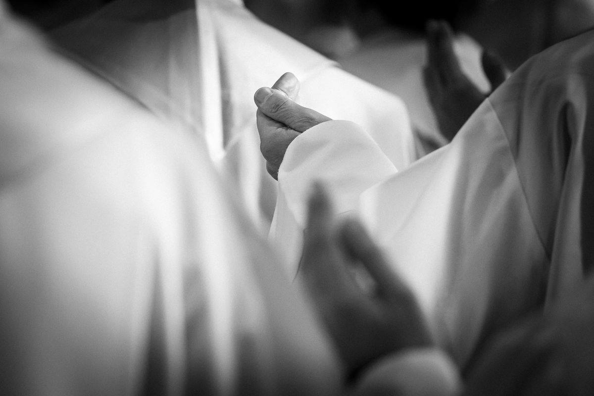 Veres András győri megyéspüspök áldozópappá szenteli Both Zoltán, Méry László és Varga Gábor diakónusokat.