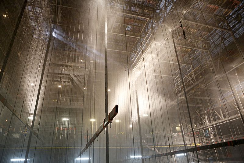A teátrumban négy évente záporpróbát tartanak annak érdekében, hogy teszteljék a tűzvédelmi berendezéseket.