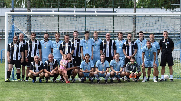 Koradélután igazi örömfutballt láthattak a kilátogatók: felnőtt csapatunk ellenfelei a Répcelaki SE elnökségéből, edzőinkből és a Városvezetésből verbúválódott gárda volt, akik a tradicionális bányászegyesület mezét magukra öltve játszottak. A halóőr Németh Gábor Gaca, az SE elnöke volt, ám a kezdőcsapatban pályára lépett Szabó József, településünk polgármestere is, aki így már a korábbi hétvége kézilabda és kosárlabda szereplése után méltán érdemelheti ki a környék Legaktívabb Városvezetője címet. A nagy meccs után együtt játszott néhány felnőtt játékos a kisebbekkel, igazi élményt szerezve ezzel a fiúknak, míg a kilátogatók és a játékosok egy jó gulyás és némi ital mellett beszélgettek.