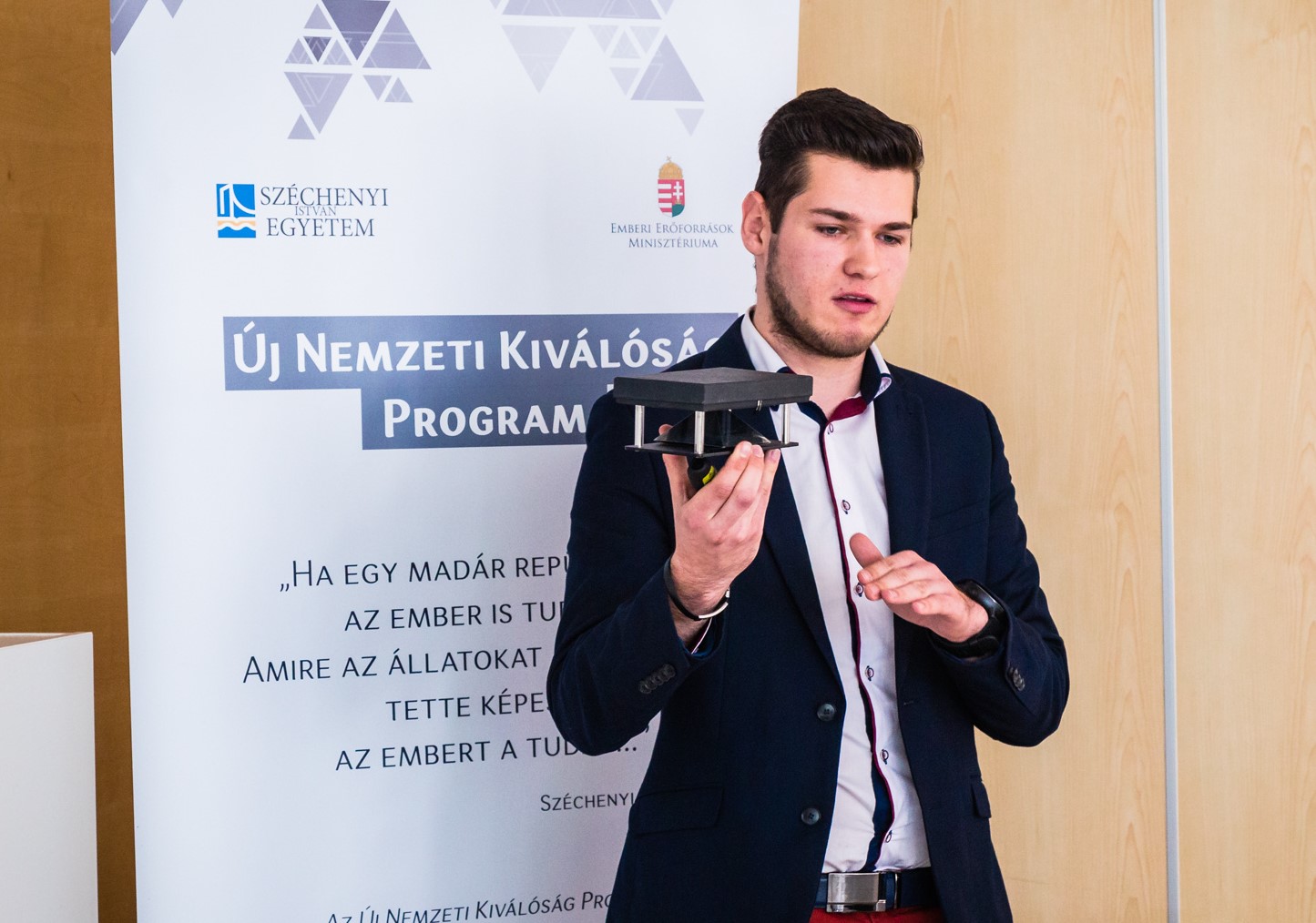 Az Új Nemzeti Kiválóság Program (ÚNKP) 2018/2019. évi ösztöndíjasai mutatták be kutatási eredményeiket a Széchenyi István Egyetem Új Tudástér épületében. Az ÚNKP célja a tudományos utánpótlás megerősítése, a tudományos életpálya vonzóvá tétele, a kiváló oktatók, kutatók pályán- és itthon tartása, illetve az egyetemek tudományos teljesítményének ösztönzése.