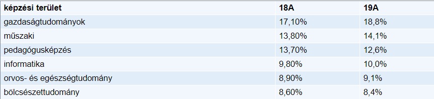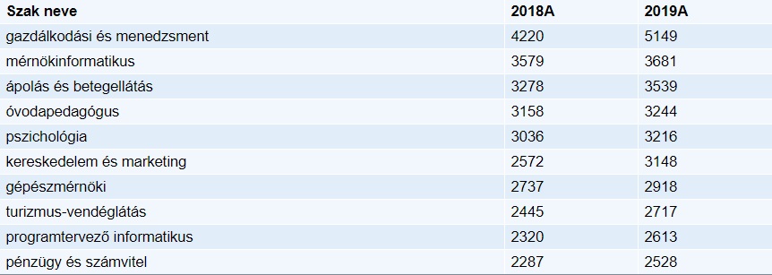 A legnépszerűbb alapképzések az első helyes jelentkezések alapján