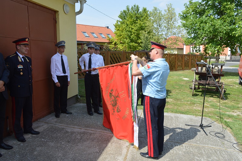 A csapatzászlóra Sallai Péter tűzoltó dandártábornok, megyei katasztrófavédelmi igazgató kötötte föl a közös munkát jelképező szalagot. Az egyesület és Kunsziget Község Önkormányzatát képviselve Lendvai Ivánné polgármester is elismerően szólt az önkéntesek munkájáról. Tisztelgett az egyesület alapítóinak emléke előtt, és mérföldkőnek nevezte az önálló beavatkozás lehetőségét az egyesület és a település életében.