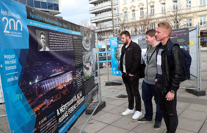 Az „Építőmérnökök Éve" alkalmából Győrben a Megyeháza téren az egyes építőmérnöki szakterületek legkiválóbb alkotásait bemutató plakátkiállítás nyílt hétfőn.