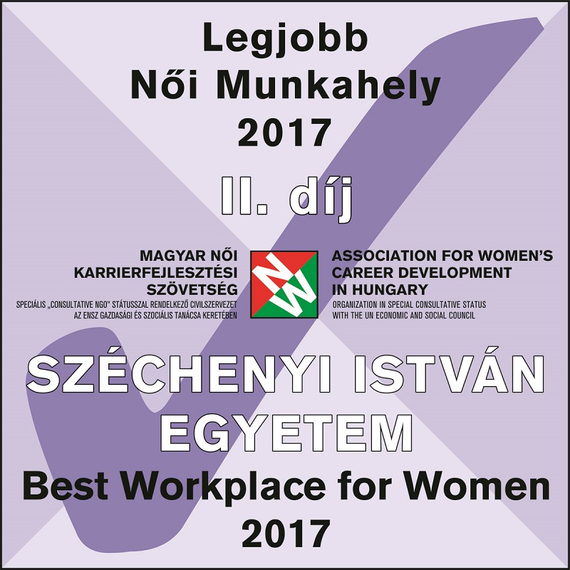 Az első díjat a GE Magyarország, a második díjat a Széchenyi István Egyetem, a harmadik díjat pedig az AGCO Hungary Kft. nyerte el. A pályázat zsűrije elismerte, hogy a Széchenyi István Egyetem támogatja a nők életpályáját. 2017-ben a huszonegy felvett pályakezdő közül tizenkettő nő volt. Ez az arány egyértelműen mutatja, hogy magas támogatottsággal ad esélyt a pályakezdő nőknek. A GYES/GYED-ről visszatérő kismamákat részmunkaidős vagy rugalmas munkaidőben igény szerint foglalkoztatja. A kisgyermekes szülőknek egyéni kérések szerint tervezi az órarendet. Az egyetemi könyvtárban egész napos gyermekmegőrző működik, ahol a munkatársak és hallgatók szükség esetén biztonságos körülmények között hagyhatják gyermekeiket.