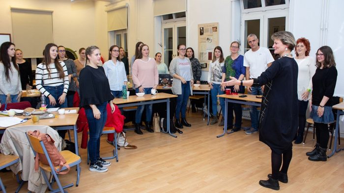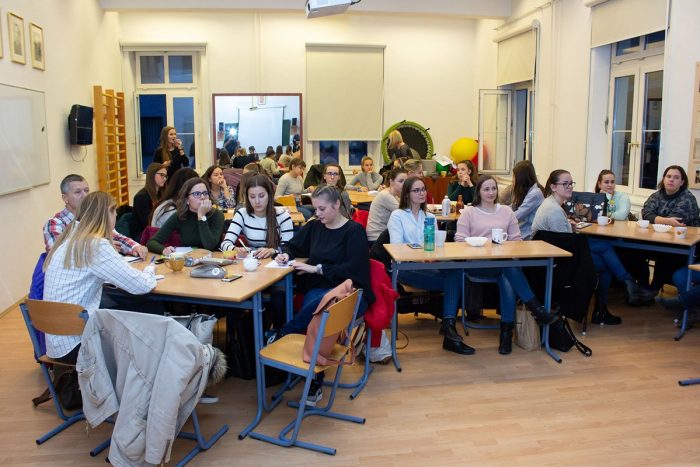 A legutóbbi alkalommal Csóka Judit klinikai szakpszichológus látogatott el az Apáczai-karra, hogy a meseterápiáról adjon elő az érdeklődőknek.