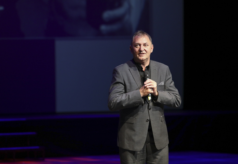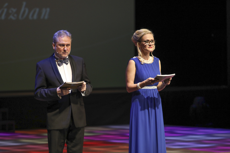 A gála műsorvezetői: Forgács Péter, a teátrum igazgatója és Agócs Judit színésznő