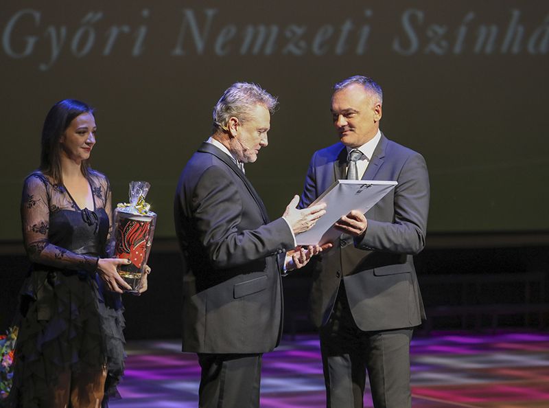 A keddi gálán először négyen maradtak a színpadon, akik már előtte is a nemzeti elődjében, a Kisfaludy Színházban játszottak: Bede Fazekas Csaba 1969, Bende Ildikó 1974, Rupnik Károly 1976, Györgyfi József pedig 1977 óta játszik a győri közönség előtt. Miután köszöntötték őket a műsorvezetők, Forgács Péter igazgató és Agócs Judit színésznő, Borkai Zsolt polgármester ünnepi beszéde következett. Úgy fogalmazott, a negyven év során olyan közösségi tér jött létre, ahová a közönség és a színészek, a háttérdolgozók is szívesen járnak. Utalt arra, hogy a társulat jól teljesít, évről-évre egyre több a bérletesek száma. Az épület megérett a felújításra, a 2020/21-es évadot már az Olimpiai Sportparkban kezdik, amely átmeneti otthona lesz a társulatnak a munkálatok alatt. A Modern Városok Program keretében megújul a teátrum környezete a II. János Pál térrel együtt. „Remélem, hogy amikor aztán visszaköltöznek az épületbe, már javában dolgozunk azon, hogy fogadjuk a kontinenst, mert elnyertük az Európa Kulturális Fővárosa címet 2023-ra. Ez idén decemberben kiderül” – mutatott rá a polgármester, majd emléklapot adományozott a társulat számára.