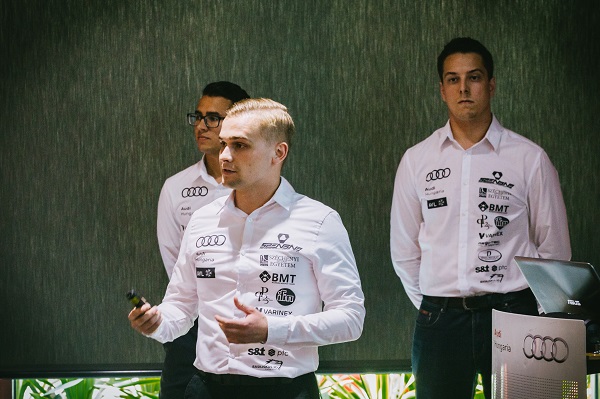 Bár a Formula Student ízig-vérig komoly autóverseny-sorozat is egyben az ezzel együtt járó rivalizálással, a résztvevők mégis legalább ilyen fontosnak tartják a párbeszédet, az egymástól tanulás lehetőségét. Ez pedig az igazi győztesek útja. A Széchenyi István Egyetem SZEngine hallgatói csapata az új motor bemutatóját is az Arrabona Rancing Team és BME Motorsport csapat vezetőivel közösen tartotta az Audi Hungaria Járműmérnöki Kar épületében.