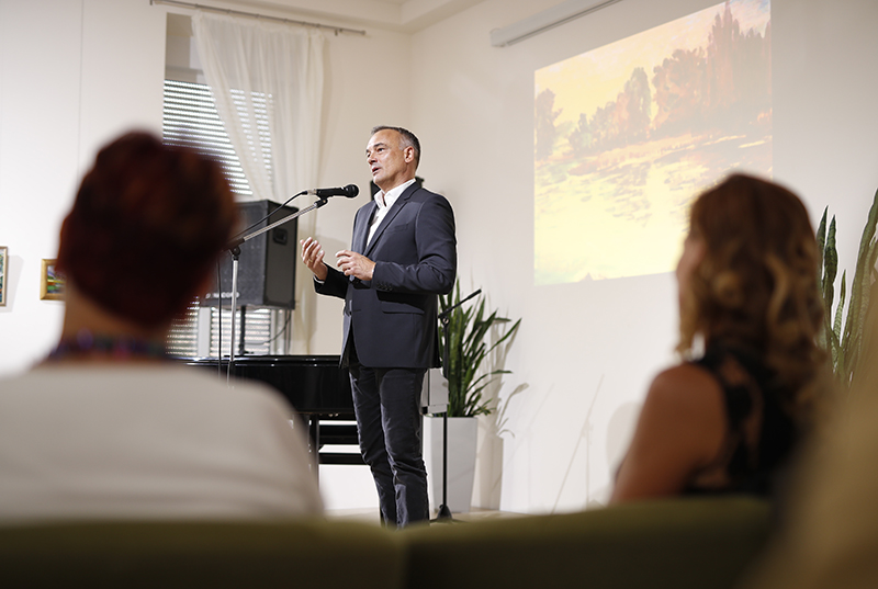 A kiállítást Grászli Bernadett, a Rómer Flóris Művészeti és Történeti Múzeum igazgatója nyitotta meg. A szakember felhívta a figyelmet az évszakok változásait követő festményekre és a míves üvegmozaikokra. “Az alkotó rajzformáit a szecesszió is inspirálta” – jegyezte meg. Méltatta a toszkán dombos tájakról készült sorozatot, valamint a kék írisz, a fehér liliom és a piros rózsa csendéletét, mely a „belső harmónia szabad felidézése”. A színárnyalatokban gazdag életfa pedig „a teljességben gazdag élet szimbóluma”- hangoztatta az igazgatónő.