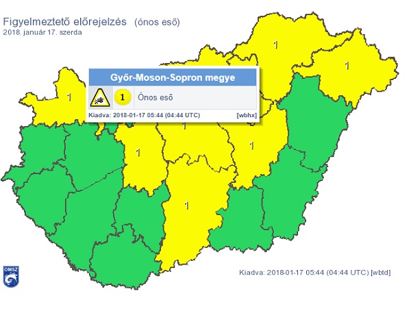 Nagy mennyiségű csapadék ma nem várható, azonban az ónos eső lehetősége miatt figyelmeztetést adott ki megyénkre az Országos Meteorológiai Szolgálat.