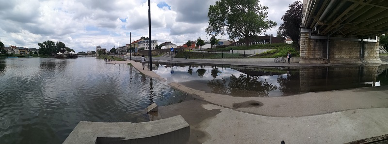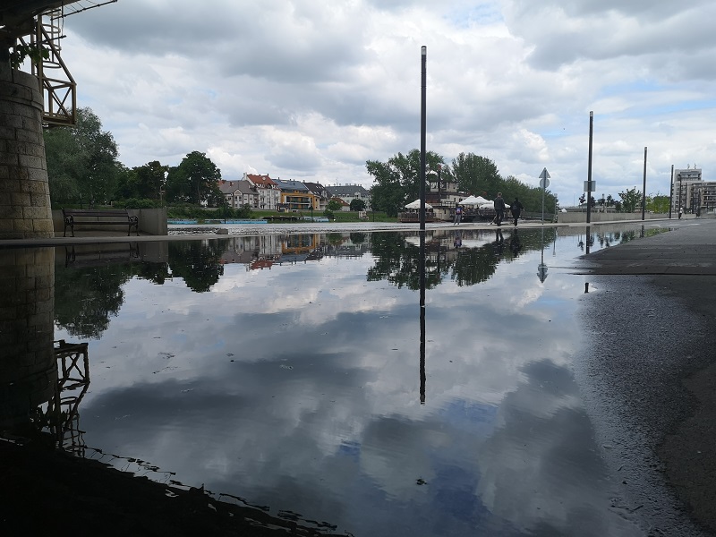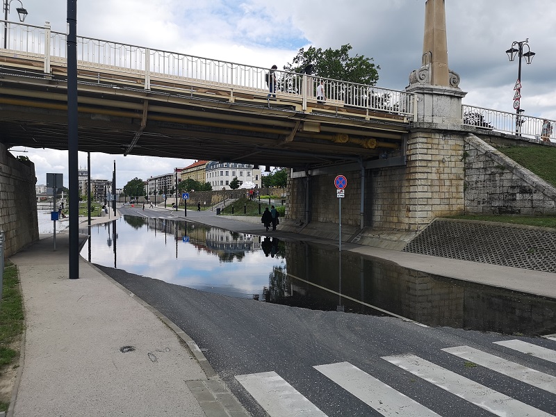 Ahogy a képek is mutatják, a folyó kilépett a medréből, és ellepte az úttestet, a Kossuth híd alatt jelenleg is áll a víz. Ez a gyalogos forgalmat nem befolyásolja, a járdán el lehet haladni. Az áradás látványa sok nézelődőt vonz a rakpartra.