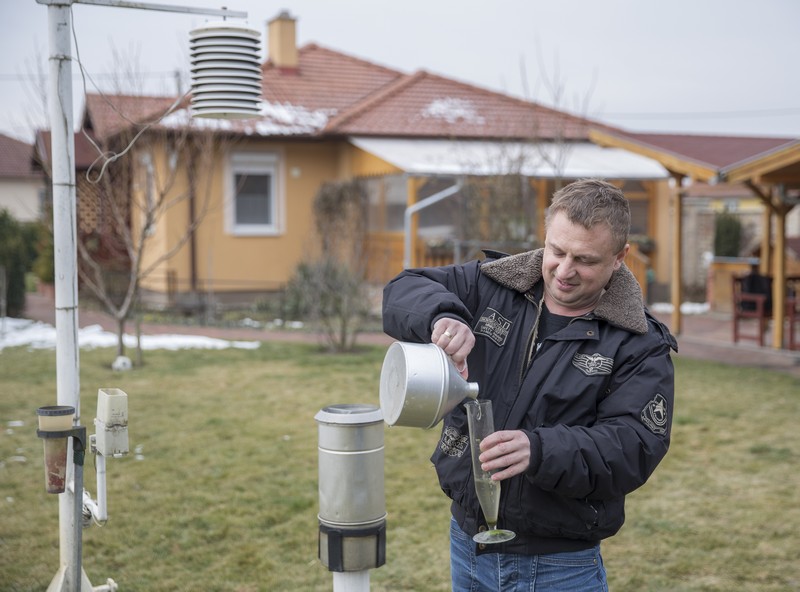 Győrszemere-Nagyszentpálon található házukban hitelesített műszerekkel felszerelt állomás működik, ahonnan minden nap továbbítja az adatokat az Országos Meteorológiai Szolgálat felé. „Naponta legalább egyszer, reggel hat óra negyvenöt perckor kell küldenem a mért csapadékmennyiséget, és fel kell jegyeznem az időjárási jelenségeket is” – meséli Fischer Imre, aki évről évre vizsgákon is bizonyítja alkalmasságát.