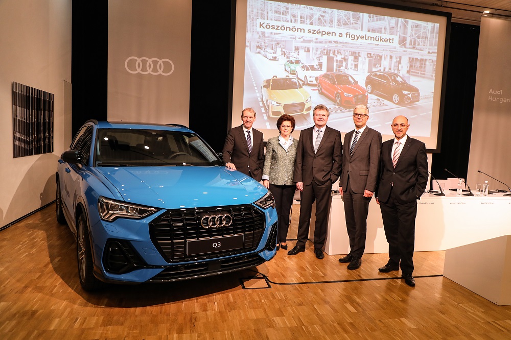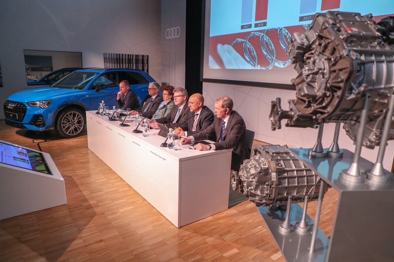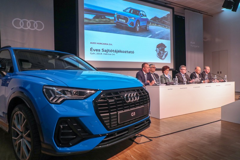 Achim Heinfling, az Audi Hungaria Zrt. igazgatóságának elnöke szolid üzleti évként jellemezte a sajtótájékoztatón a 2018-as évet. Eredmények és nehézségek egyaránt voltak. Fontos mérföldkőnek nevezte az elektromos meghajtások gyártásának elindítását, s ezzel a fennállásuk 25. évében megérkezett az elektromobilitás az Audi Hungariához. Szintén az elmúlt évben kezdődött az első győri SUV, az Audi Q3 sorozatgyártása. „Mindkét projekt szilárd alapot teremt az Audi Hungaria jövőjének biztosításához” – jelentette ki Achim Heinfling. „Ezzel egyidejűleg azonban számos kihívással – mint például a WLTP-átállás (egy az egész világra kiterjedő összehangolt vizsgálati eljárás – a szerk.) miatti termelési ingadozások – kellett szembenéznünk, amely sok erőt és energiát emésztett fel. Ezen egyedi hatások figyelembevételével a vállalat stabil termelési volument és szolid pénzügyi eredményeket ért el 2018-ban. Az egyre erősödő verseny ebben az évben is kihívások elé állít minket: az Audi Hungaria versenyképességének megőrzése érdekében hatékonysági és megtakarítási intézkedéseket fogunk bevezetni” – hangsúlyozta.