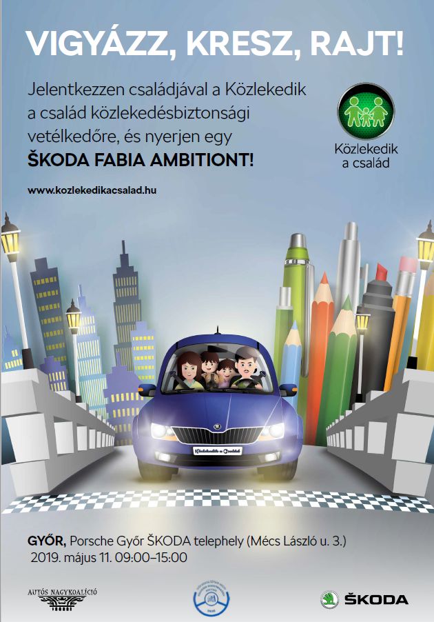 Az ORFK-Országos Balesetmegelőzési Bizottság idén is meghirdeti a „Közlekedik a család” közlekedésbiztonsági vetélkedősorozatot. A megyei döntőt 2019. május 11-én rendezik a Porsche Győr Skoda (Győr, Mécs László út 3. szám) telephelyen.