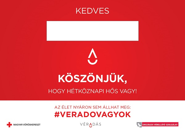 Nyáron a nagy meleg és a szabadságolások miatt csökken a véradói aktivitás, ezért döntöttek úgy az országos szervezetek, hogy június 18-a és szeptember 2-a között kampányt indított. Mindenki, aki vért ad, egy személyre szabott köszönőkártyát kap, amely egyben nyereményszelvény is. Akik feltöltik a kártyán szereplő kódot, értékes heti és havi nyereményre pályázhatnak, sőt, a kampány végén egy fődíj is gazdára talál.