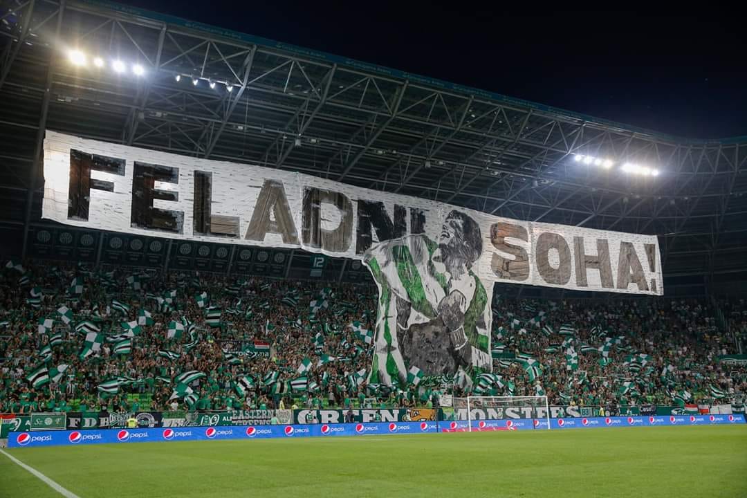 “Feladni soha” – ez volt az üzenet a hazai szurkolók látványos óriásmolinóján, amelyen zöld-fehérbe öltöztették a filmtörténet egyik legnagyobb harcosát, a Sylvester Stallone által megformált ökölvívót, Rockyt. A klasszikussal ellentétben a Ferencvárosnak nem a padlóról kellett felállnia, hiszen az első mérkőzésen úgy játszott idegenben gól nélküli döntetlent, hogy végig nagy mezőnyfölényben futballozott.