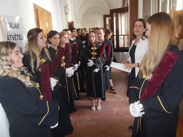 Dr. Földesi Péter és dr. Smuk Péter professzor, dékánhelyettes 55 végzett jogász hallgatót fogadott doktorrá, akik a rektori jogarra letett esküjükkel, az avatási kézfogással váltak a hivatásrend képviselőivé. 36 fő nappali, 19 fő levelező tagozaton végzett.