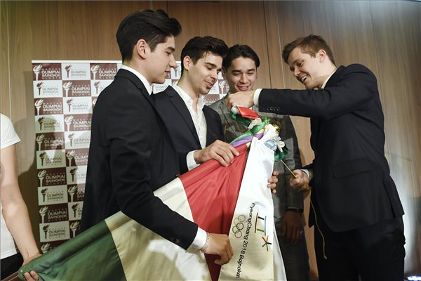 Kulcsár Krisztián elnök a Magyar Olimpiai Bizottság ajándékait adta át a sporttörténelmi sikert elérő versenyzőknek.