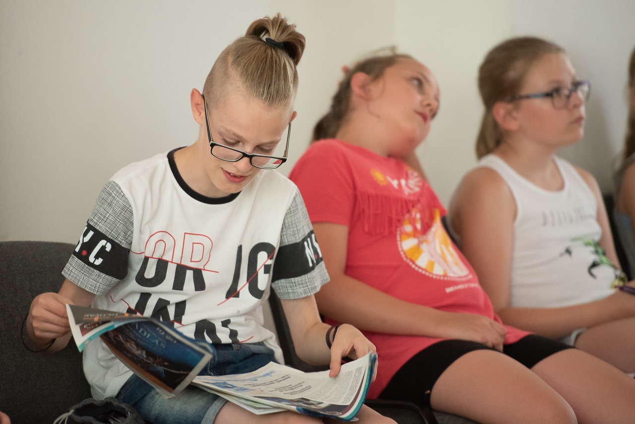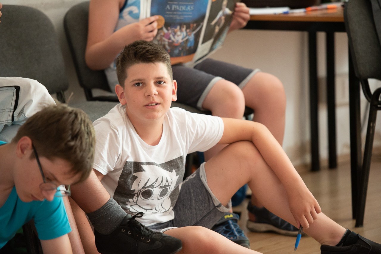 Kedden további munkatársunk, Havassy Anna Katalin újságíró-szerkesztő, rendőrségi tudósító látogatta meg a táborlakókat s az újságírásról, az újságkészítésről beszélgetett velük. A gyermekek gyorsan megtanulták, hogy toll és papír nélkül nem sokra mennek, ahogy a jó kérdések fontosságáról is szó esett. Kata többek között beszélt a szakterületéről is, hogy miben másabb egy rendőrségi tudósító élete, mint más újságíróké, s hogy ha a tűzoltóság hívja, akkor bizony az éjszaka közepén is a helyszínre kell sietnie. Szerencsére Győr viszonylag nyugodt városnak tekinthető, így leginkább a balesetek adnak témát, illetve ahogy munkatársunk fogalmazott: szeret a pozitív kimenetelű ügyekről, felderítésekről írni, szívesen mutat be egyenruhás életutakat, sorsokat.