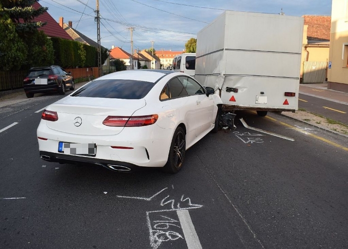 Egy 60 éves pápai férfi közlekedett Mercedes személygépkocsijával Tét belterületén, 2019. augusztus 11-én, kora reggel. A sofőr haladása során egy, az úttest szélén várakozó járműszerelvényt akart kikerülni, azonban azt nem a tőle elvárható figyelemmel tette, és személyautójával a vontatmány hátuljának ütközött. A balesetben személyi sérülés nem történt.