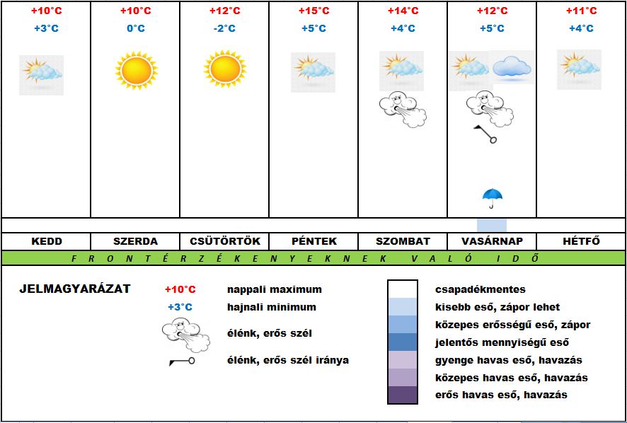 A turbulens hét eleje után kedden javul az idő, a szél, azonban ha jelentősen mérséklődik is, arra a szívességre nem hajlandó, hogy déliesre váltson. Ezért a hajnalok tovább hűlnek, s csütörtök reggel a Kisalföldön a 2 m-es szintben is fagy várható.
