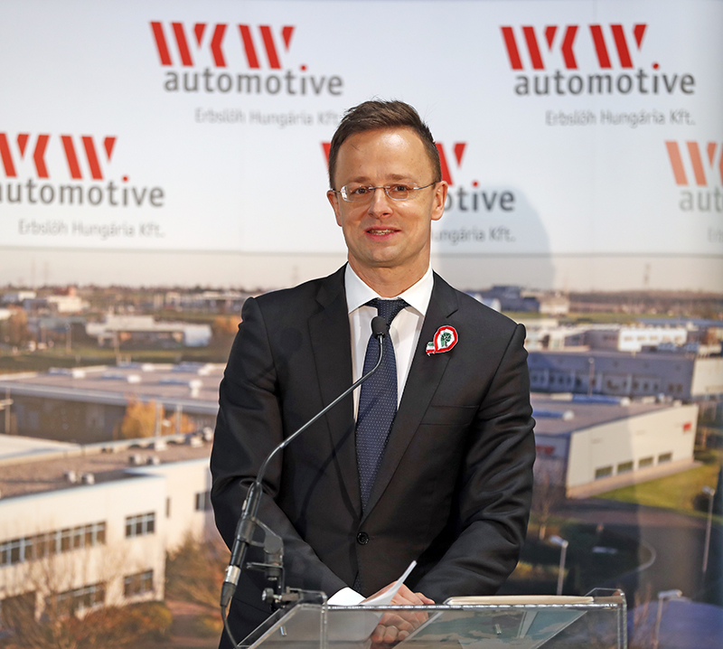 Szijjártó Péter beszédében úgy fogalmazott: a magyar gazdasági modellt a magyar emberek teljesítménye teszi működőképessé. A gazdaság gerincoszlopa az autóipar, melynek az alumínium profilokat, díszléceket gyártó, az Audinak pedig dugattyúkat is szerelő győri Erbslöh Hungaria is fontos része. 175 ezer ember dolgozik ebben az iparágban. A megtermelt értékek 91,8 százaléka exportra készül.