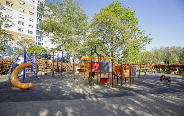 Emellett további fejlesztést is végrehajtottak, hiszen a meglévő hagyományos játszóteret is bővítették, kényelmes és biztonságos rekortán burkolaton egy újabb területen három új játékeszköz is kikerült: egy mérleghinta, egy mászóvár csúszdával és egy háromágú polyball, melybe labdát lehet dobálni.