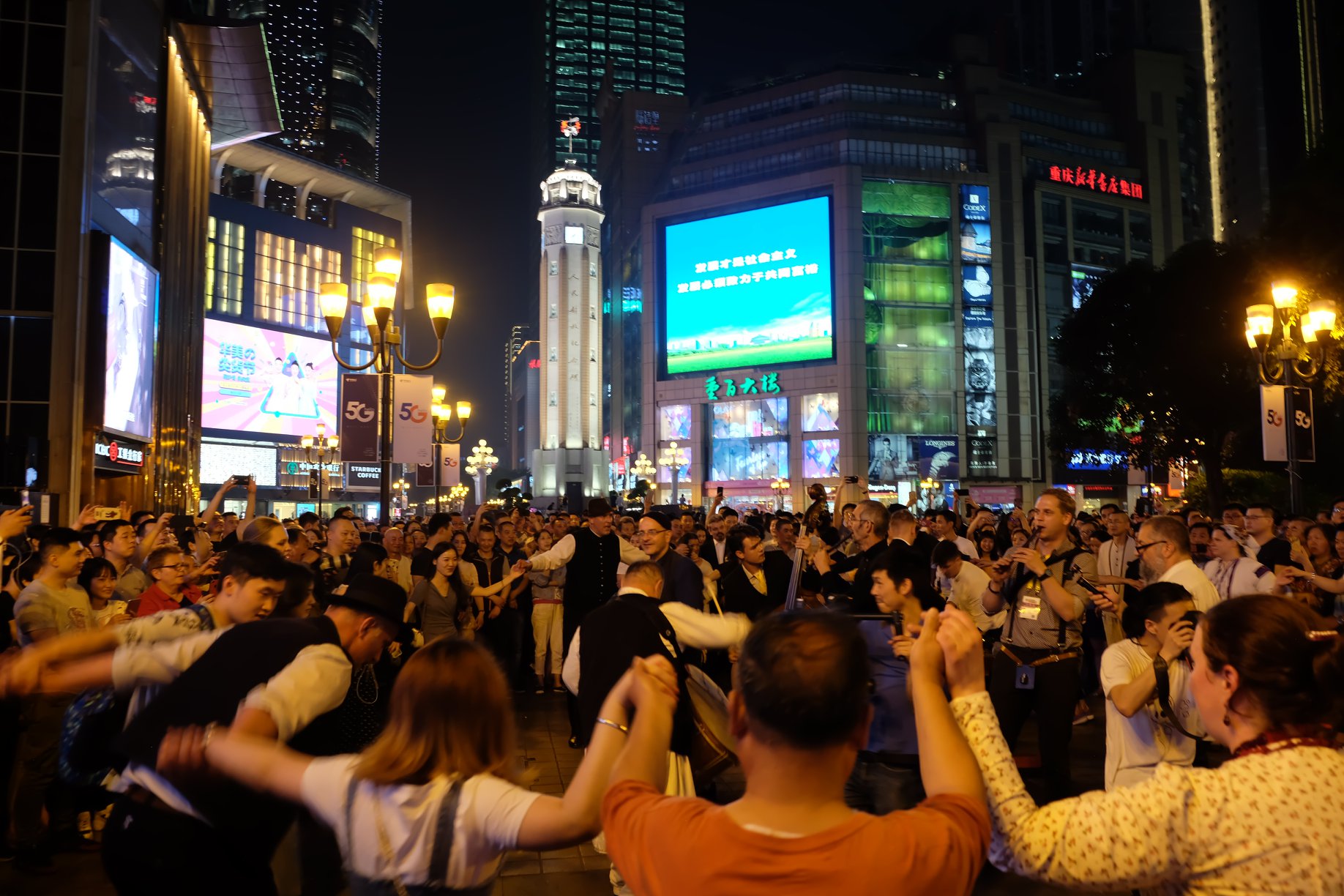 A cifrák egy flashmobon is bemutatkoztak a város főterén, ahol szigorú rendőri jelenlét mellett kápráztatták el a kínaiakat. Ellátogattak egy táncot oktató egyetemre, ott előadást, majd táncházat tartottak, Kossuth-nótát énekeltek Petőfi Sándor és Szendrei Júlia mellszobrának alapkőletételén a város szerelmesek által kedvelt helyén. Elutaztak egy 500 kilométerre lévő település fesztiváljára is, a másfél órás vonatutat végigtáncolták, -énekelték az utasok nagy örömére.