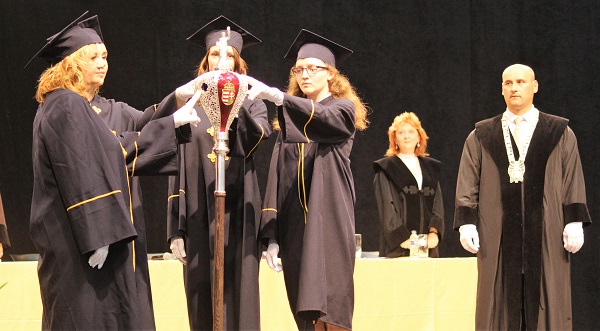 A végzősök nevében Hancz Bianka tanító alapszakos hallgató köszönt el az Alma Matertől. Felidézte az a napot, amikor elsőéves hallgatóként a fizikatanáruk nagymamája meglátogatta őket és elődást tartott. Neki már tizennyolc évesen negyven fős osztálya volt, különböző korú diákokkal. Az üzenetet, amit útravalóul kaptak tőle, azóta őrzi: „A legfontosabb, hogy szeressétek a gyerekeket, szeretettel mindent meg lehet oldani.” Ez a szeretet sugárzott abból az elődásból is, ahogy Tarcsai Veronika és Török Anita, kétszeres aranypáva díjas, végzős hallgatók népdalcsokrot énekeltek a diplomaátadó közönségének.