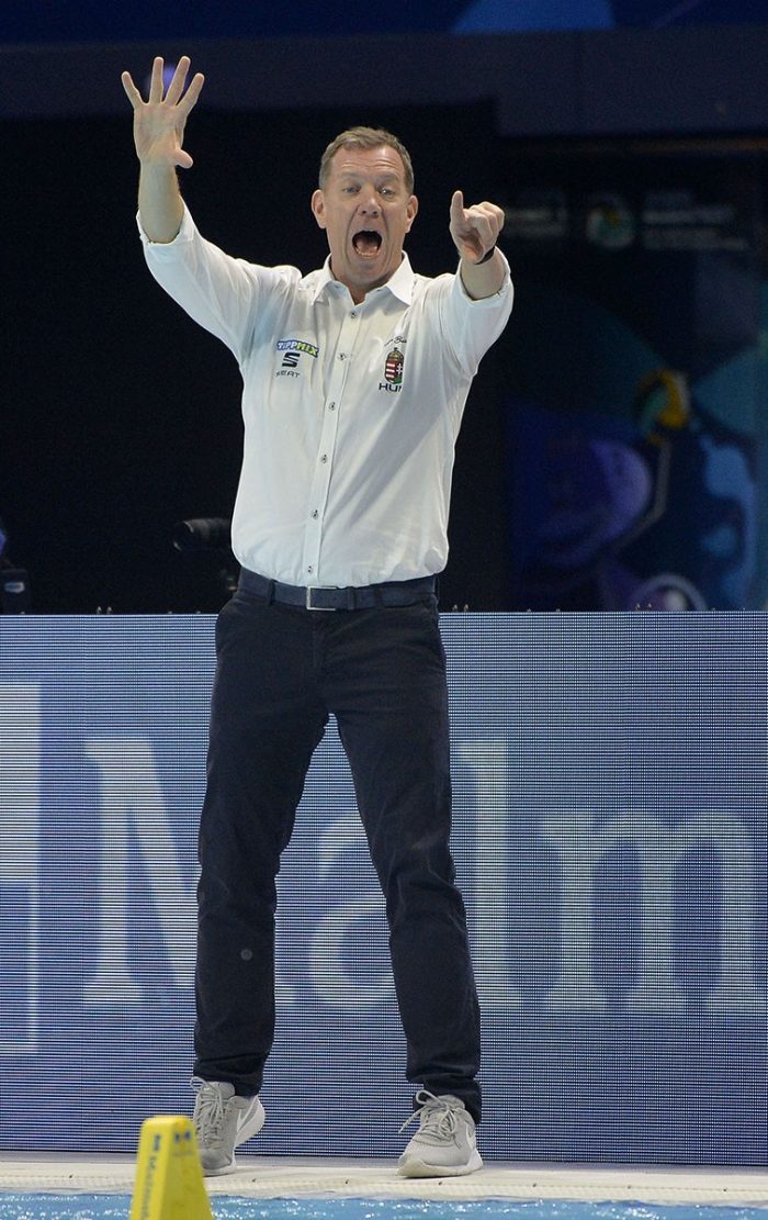 Vogel két parádés védéssel kezdte a harmadik negyedet, utóbbiból Vámos tudott megúszni és értékesítette is a ziccert (6-4), a másik oldalon emberelőnyből érkezett az újabb spanyol találat. Gyorsan jött a válasz, egy gyönyörű bejátszást Hárai Balázs szelídített meg és pofozott a kapuba, Alvaro Granados pedig egy bombával folytatta a gólváltást, Angyal a következő támadásból pár pillanat múlva szinte lemásolta ugyanezt (8-6). A spanyolok elhibázták a következő fórjukat – a videobíró sem “mentette meg őket” -, Perrone azonban megúszásból nem kegyelmezett. Másfél perccel a szünet előtt kimaradt egy magyar előny, de a spanyolok sem éltek a létszámfölény adta lehetőséggel. A spanyolok ennek ellenére egyenlítettek, tíz másodperccel a dudaszó előtt Manhercz védekezési hibáját használták ki (8-8), Varga csapatkapitányként alaposan leteremtette társát.