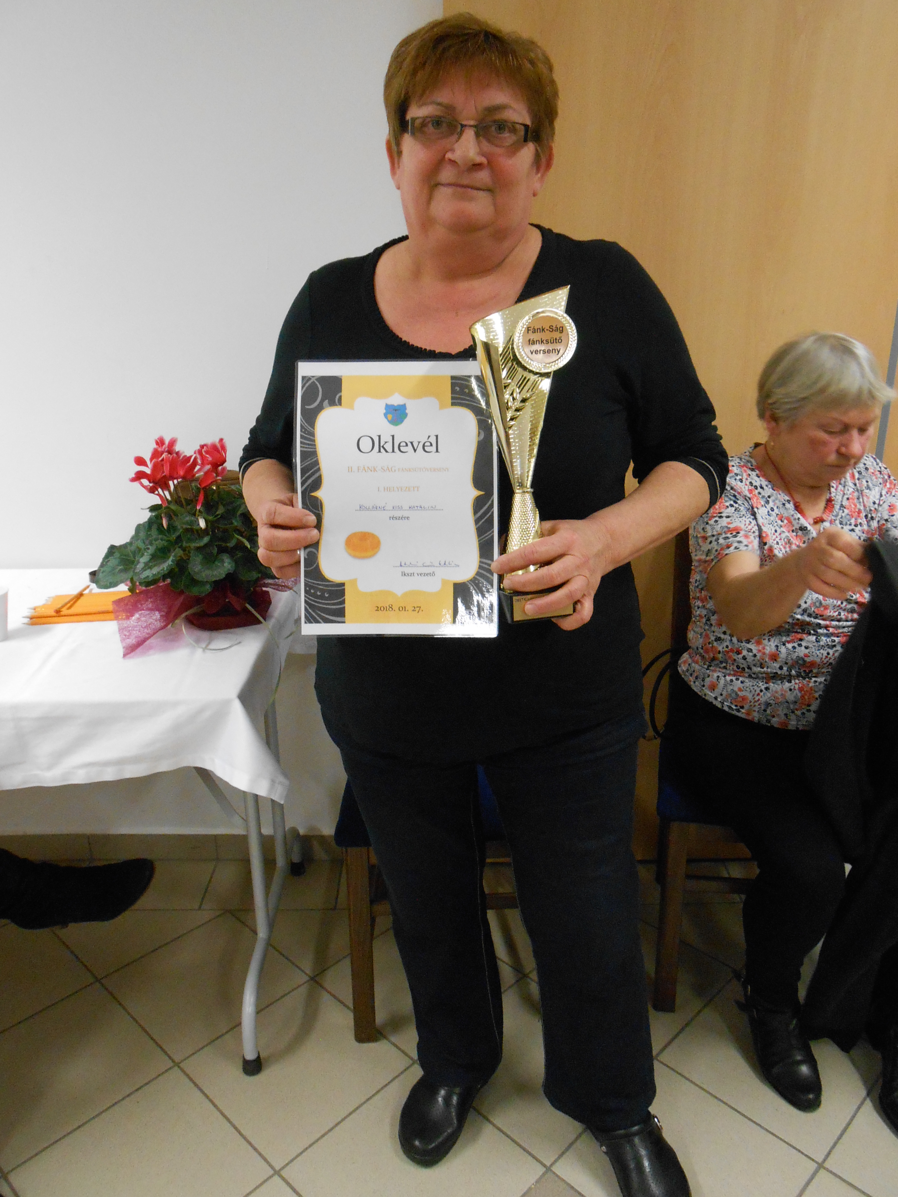 Az első helyet Kollárné Kiss Katalin kapta meg a zsűri és a közönség közös véleménye alapján. A második helyen Kovács-Kurucz Barbara, a harmadikon Ráczné Domokos Szilvia végzett. Tarjányiné Nagy Julianna sós fánkját a zsűri és a közönség is különdíjra jelölte. Az első helyezett vándorserleget és oklevelet, a 2. és 3. helyezett valamint a különdíjas oklevelet, a többi résztvevő pedig emléklapot vehetett át a finom étkekért s a fáradozásért.