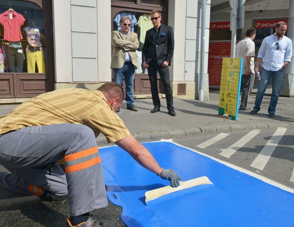 „A Belvárosban sokan keresnek parkolóhelyet, és közben előfordul, hogy a mozgáskorlátozottak számára jelzőtáblával, burkolati jellel biztosított parkolóhelyeket foglalják el az autósok. Hogy a jövőben elkerüljük a felesleges szabálysértéseket, a városközpont közel ötven mozgáskorlátozott parkolóját festjük át kékre, és erre a figyelemfelhívó alapra kerül a fehér piktogram.” – fogalmazott Radnóti Ákos alpolgármester.