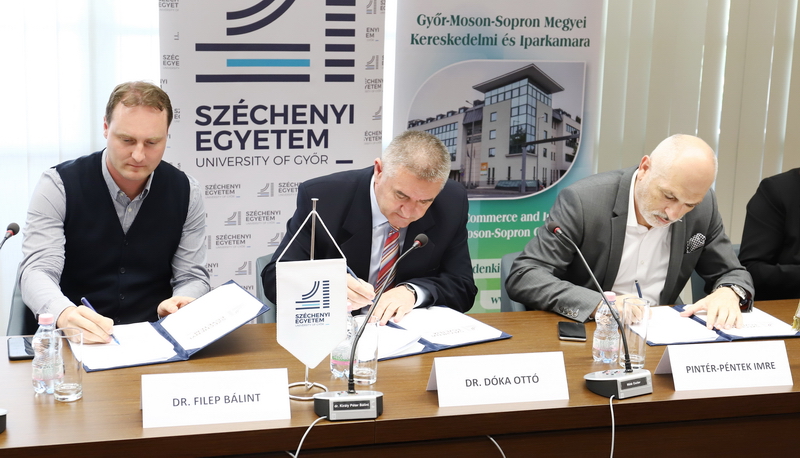 A gazdaság – kutatás, az innováció, a nemzetköziesedés, a képzések és a vállalkozóvá válás területeire kiterjedő stratégiai együttműködési megállapodást kötött a Széchenyi István Egyetem a Győr-Moson-Sopron Megyei Kereskedelmi- és Iparkamarával. Az aláírást követően a kamara elnöksége kihelyezett ülést tartott az egyetem új Menedzsment Campusán.
