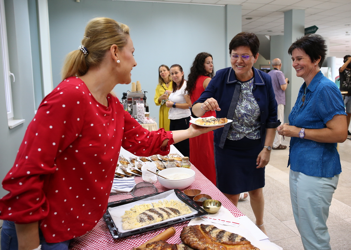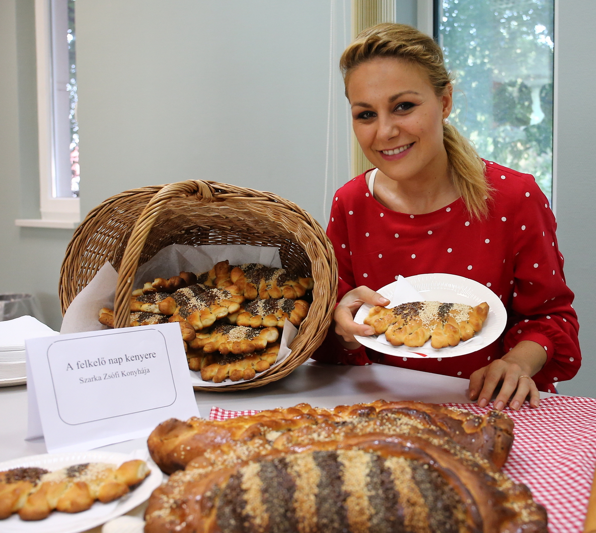 A felkelő nap kenyere elnevezésű péksüteménnyel várta Szarka Zsófia, gasztroújságíró, a Győr+ Konyha szerzője a XVII. Euroregionális Kenyérfesztivál és Kézműves Találkozó sajtótájékoztatójára érkező vendégeket a Megyei Kereskedelmi és Iparkamara székházában szerdán.