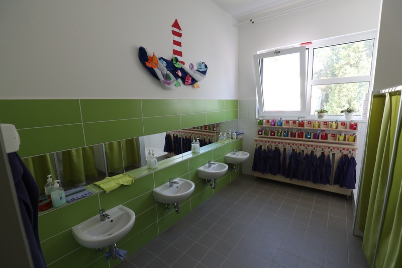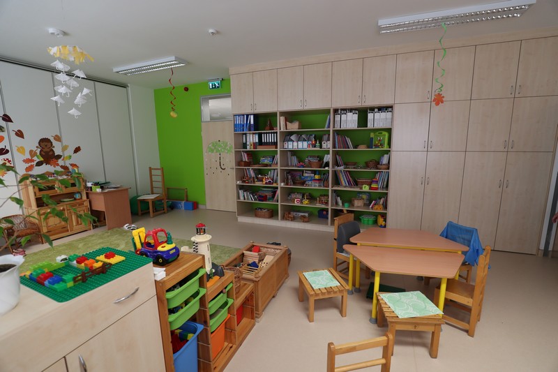 Az új földszinten gyermeköltözők, raktár, mosó-szárító helyiség, nevelői és akadálymentes vendég WC, valamint bejárathoz közeli lépcsőház jött létre. Itt került elhelyezésre a személyfelvonó lift, mellyel eddig nem rendelkezett az épület. Az új emeleti részen a két foglalkoztató mellett öltöző, mosdó, WC és egyéni foglalkoztató helyiségek épültek.