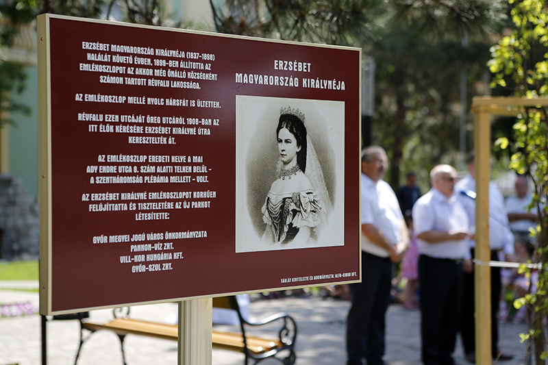 Dr. Somogyi Tivadar alpolgármester, a városrész önkormányzati képviselője kezdeményezte annak az új emlékparknak a kialakítását, amely a korábban elhanyagolt Rónay Jácint úti területen, az Ady Endre utca és a Dózsa Rakpart közti részen jött létre. Az alpolgármester az átadó alkalmából elmondta, az emlékpark érdekessége az az emlékoszlop, amely Erzsébet királynénak állít emléket, és amely korábban a mai Ady Endre utcában, a plébánia melletti telken belül állt. Az emlékoszlop jelentőségére révfalui polgárok hívták fel az alpolgármester figyelmét, hiszen azt Révfalu az Erzsébet királyné ellen elkövetett merényletet követő évben, 1899-ben állította, amikor az még önálló község volt.