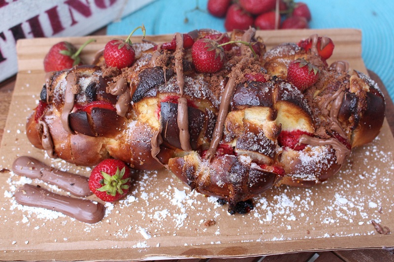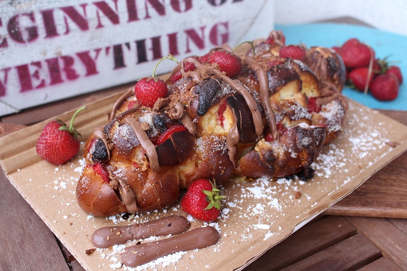 Ez egy klasszikus, kicsit más köntösben. Amikor egyszerűen, gyorsan valami kis újdonságra vágyunk, akkor ez kedvünkre való lesz! Az eper időszaka leáldozóban van, ezért már nem is az igazán hatalmas, édes epreket találom én sem a földeken. Ki kellett hát találnom valami izgalmas verziót, amiben még mindig igazi ínyencség marad az eper. Eperlekvár főzése közben hatalmas illatfelhő lengi körbe a konyhát, ez azonban csak akkor következik be, ha az epret hő éri. Gondolom sokan találkoztunk azzal a világszerte elterjedt recepttel, hogy egy hatalmas vekni kenyeret felkockáznak, a közöket megszórják sajttal, sonkával, zöldséggel, majd sütőbe teszik és megpirítják. Mindezt egy parti vagy vacsoraasztal közepére teszik, amit sokan körbeülhetnek, úgymond kockánként csipegethetnek. Arra gondoltam, miért ne gyorsíthatnám fel a reggeli készítést, azaz este megsütöm, reggel pedig csak tálalnánk egy nagy pohár tejeskávéval, gyerekeknek kakaóval a hatalmas kalácsot. Így is történt és bizony senki nem maradt éhes délig. A kalácsot készítettem már nutellával, mogyoróvajjal, szeletelt mandulával és diósan, tehát a variációk száma végtelen.