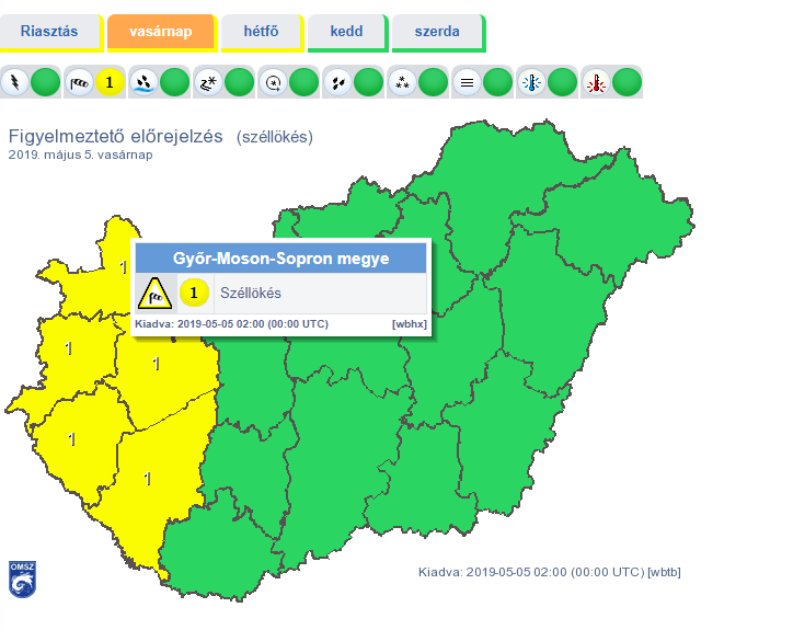 Az egyre nagyobb területen északnyugatira, északira forduló szelet a Dunántúl északnyugati, nyugati tájain gyakran viharos (ált. 60-80 km/h, néhol gt;80 km/h) széllökések kísérik. Estétől már északkeleten (Zemplén, Bodrogköz térségében) is lehetnek 65 km/h körüli lökések.