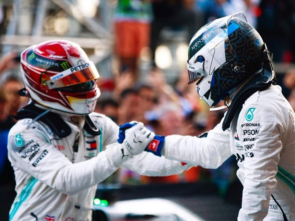 Mögötte csapattársa, a finn Valtteri Bottas lett a második, így sorozatban ötödször is kettős Mercedes-siker született, ami rekordbeállítást jelent.