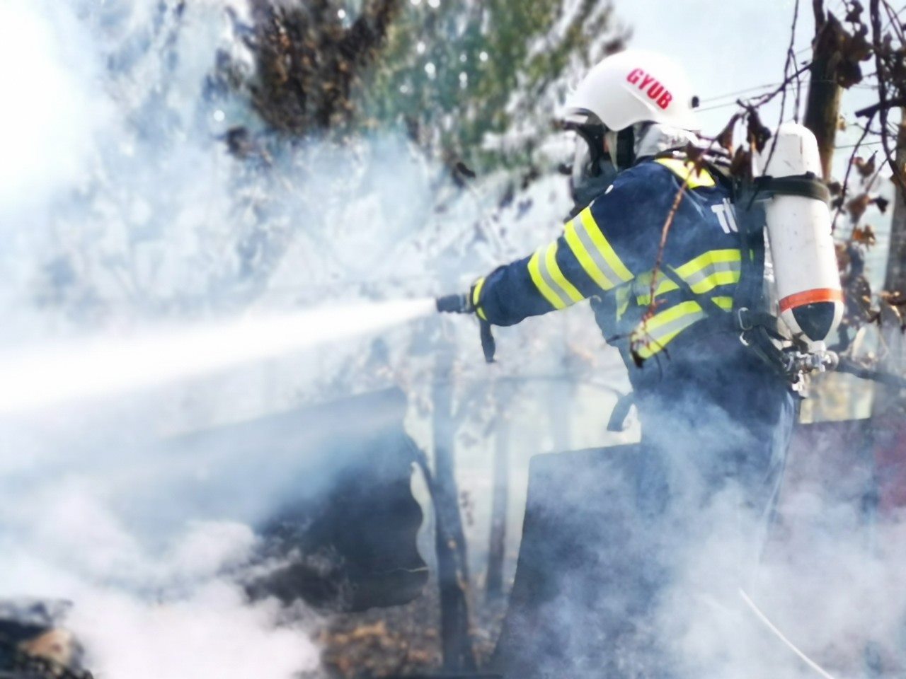 Kigyulladt egy tíz négyzetméter alapterületű faház pénteken délután Győrújbarát külterületén, a Paperdő utcában.