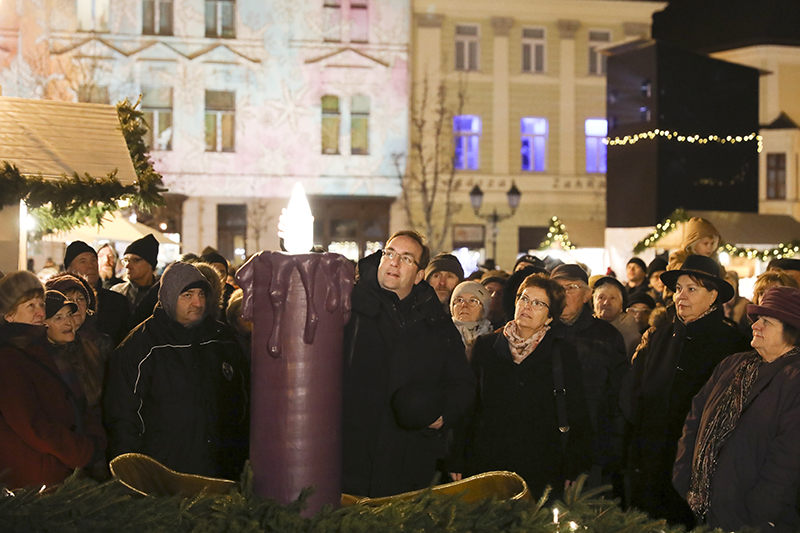 Advent első vasárnapja van, kezdetét vette a várakozás időszaka, az emberek szívébe lassan beköltözik az ünnepi varázslat. A Széchenyi téren is meggyújtották az adventi koszorú első gyertyáját december 2-án, 17 órakor.