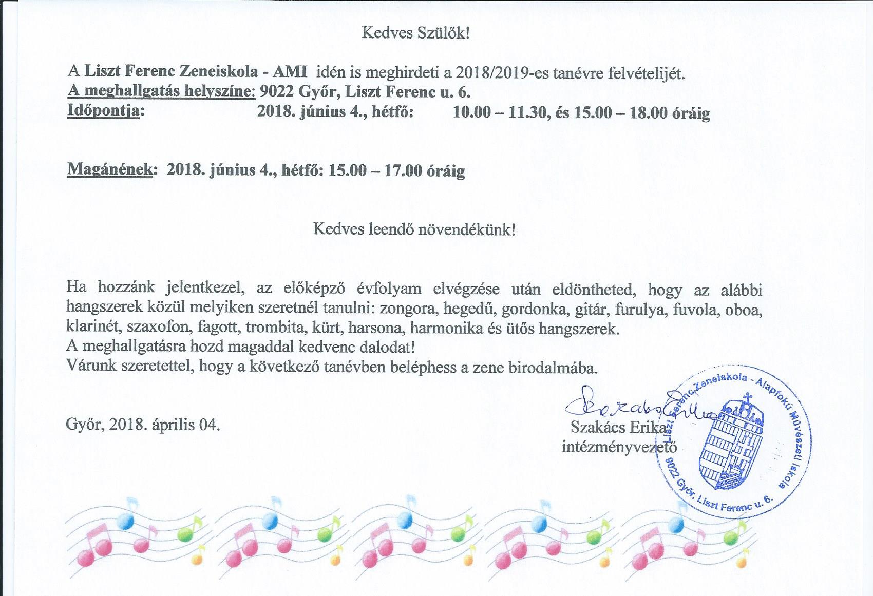 A Liszt Ferenc Zeneiskola Alapfokú Művészeti Iskola felvételt hirdet a következő tanévre.