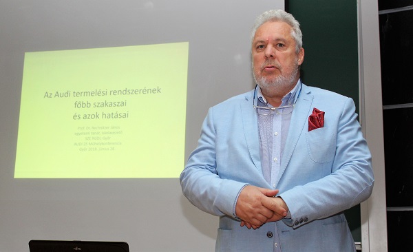 Rechnitzer János professzor az Audi termelési rendszerének főbb szakaszairól, és azok hatásairól beszélt.