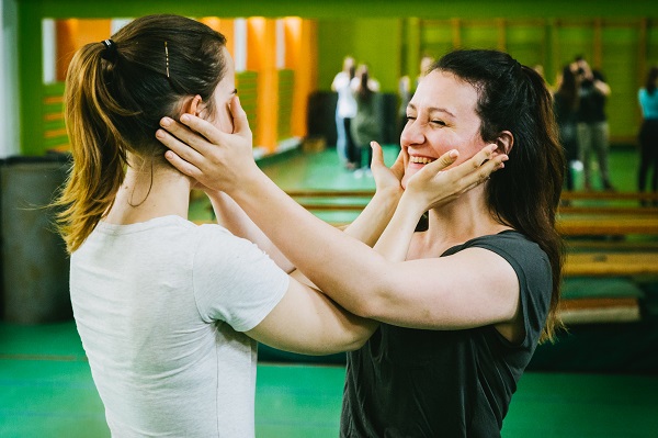 A járás után pedig következzék az érintés világa. A résztvevők, az egyetem többféle karáról érkezett hallgatók a győri Frenák-workshopon csukott szemmel végigtapintják a mellettük álló arcát. Az újdonság erejével ható, önfeledt kacagás szakad fel belőlük közben. „Gondoljatok bele, ha kesztyűvel nyúltok a táskátokba, soha nem találtok meg semmit sem benne, de amint leveszitek a kesztyűtöket, máris mondhatjátok, hogy hopp, itt a rúzs” – fordul viccesen Várnagy Kristóf a közönségéhez, ráirányítva a figyelmet a bőr érzékenységére, az érzékszervek közül a tapintás fontosságára. Egy-egy gyakorlat után közösen átbeszélik a tapasztalatokat, majd megismétlik a mozdulatsort. „Először érkezzetek meg, adjatok magatoknak időt, figyeljetek, és hangolódjatok össze, engedjetek bizalmat egymásnak” – kéri Kristóf. És ahogy követik egymást, lesznek összetettebbek a feladatok, fejlődik vezetéssé az érintés, úgy teljesednek ki, érkeznek meg Frenák Pál világába a résztvevők, változnak, lényegülnek át táncossá, tehetik teljessé önmaguk világát ugyanúgy, mint a közösségi együttlétet, légiesen szabaddá válva legvégül.