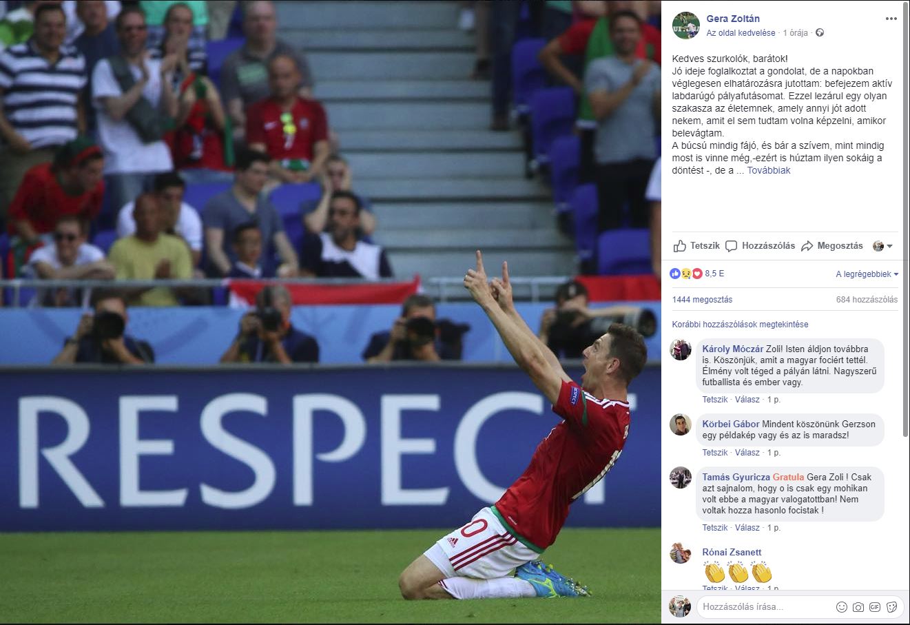 Jó ideje foglalkoztat a gondolat, de a napokban véglegesen elhatározásra jutottam: befejezem aktív labdarúgó pályafutásomat. Ezzel lezárul egy olyan szakasza az életemnek, amely annyi jót adott nekem, amit el sem tudtam volna képzelni, amikor belevágtam.
