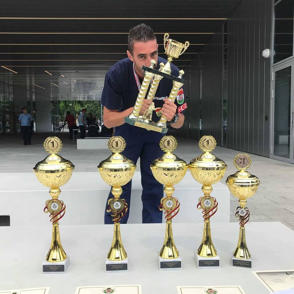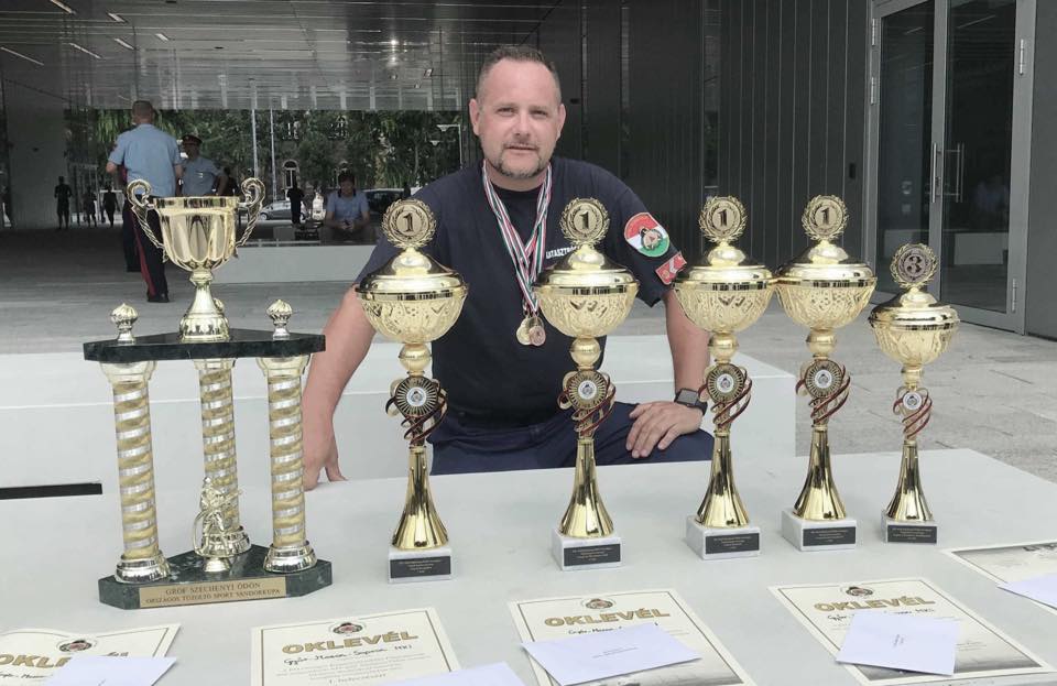 – Többször elhódítottuk már az országos vándorserleget, most harmadszorra sikerült. Ez pedig azt jelenti, hogy itt marad nálunk, mi vagyunk az örökös tulajdonosai – zárta Kőváry Adrián csapatvezető, aki miután megmutatta a kupákat, átadta a szót a csapat egyik leggyorsabb tagjának, Strobl Gergely főtörzsőrmesternek, aki a horoglétra-mászás szakértője: