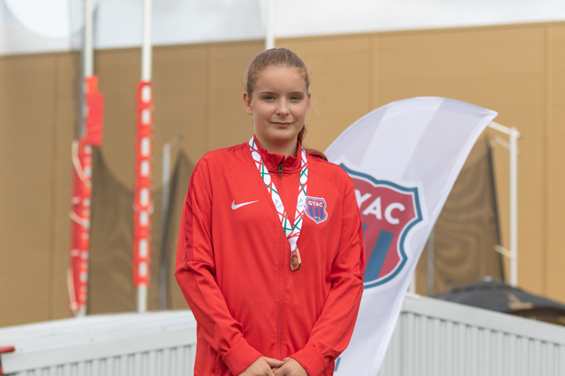 A leányok gerelyhajítás is tartogatott győri bronzérmet, amelyet Dalmai Zsófia Dorka szállított. Előtte a Csepeli DAC két atlétája végzett: Fridrich Viktória nyakába az ezüstérmet, Szabó Henrietta nyakába pedig az aranyérmet akasztották. Mindhárom versenyző az egyéni legjobb eredményével szerezte meg a helyezéseket.