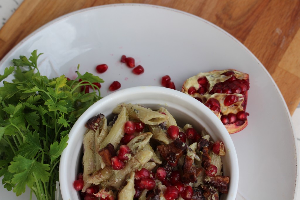 A nap kisütött, ezzel párhuzamosan újra bátran nyúlunk a színekhez is, ruhában, ételben egyaránt! A Nyugat- és Közép-Ázsiái gyümölcs, azaz a gránátalma egy izgalmas hozzávaló, de azt gondolom, kevesen tudjuk használni megfelelően, hiszen még a hámozása is nehezen megy. Valójában hihetetlen sok módja létezik a felhasználásának a teától kezdve a gyógyszeren át sós és édes ételekig. Ez egy variációja, amit ma elhoztam nektek, ahol éppen fűszerként dominál és az egész kis egyszerű ételünket feldobja az apró, pici, édes – savanyú kis magjaival.